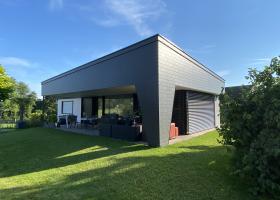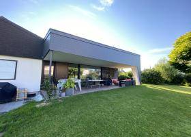 | Anbau / EFH in Roggwil Previous Next Previous Next Zurück zur Übersicht Der Wohnraum des Einfamilienhauses wurde erweitert. Der geplante Anbau ergänzt die bestehende Architektur aus einem Guss.