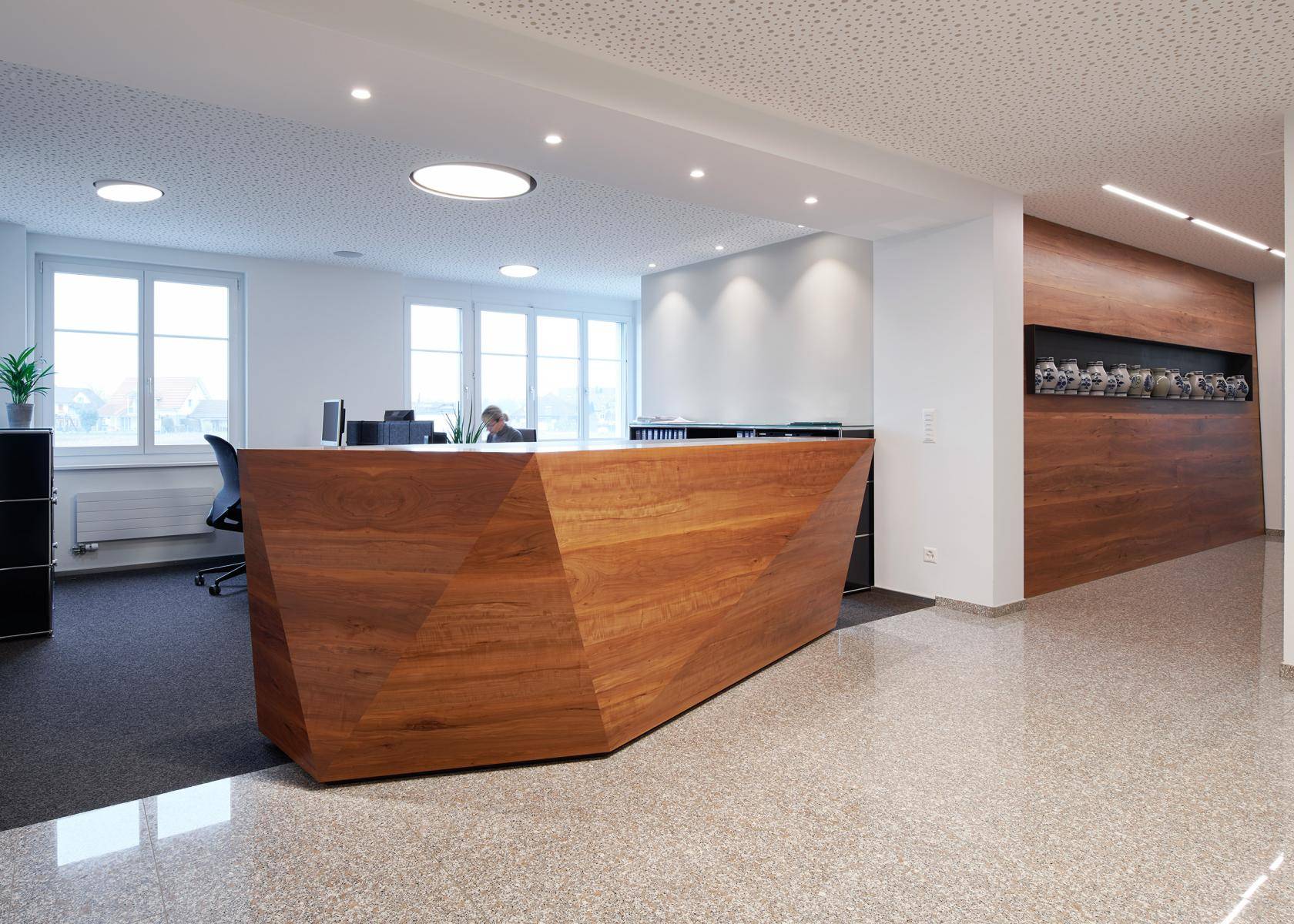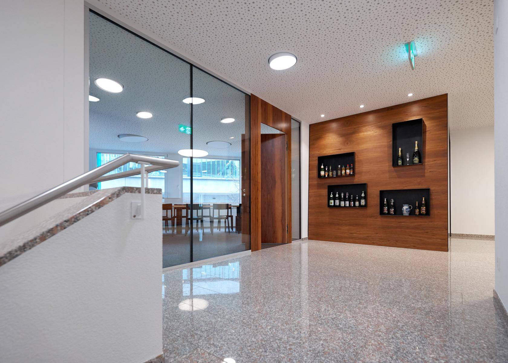 | Neubau / Marketing Büro Mosterei Möhl / Arbon Previous Next Previous Next Zurück zur Übersicht Unsere Leistungen: Entwurf & Gestaltung /Beleuchtungsplanung / Möbeldesign / Bauleitung